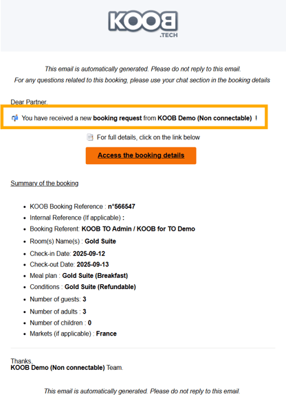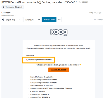 ⚠️ The TO and DMC also receive an email acknowledgement of hotel changes (cancellation, on request, confirmation), ensuring complete three-way transparency.