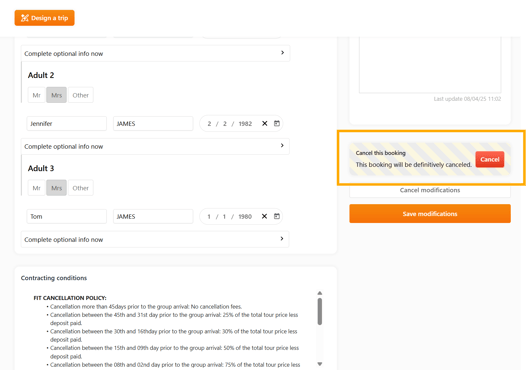 - If any hotels were included in the cancelled program, don't forget to cancel them too in the hotel section of the Customer Folder.