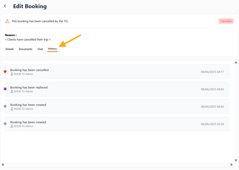 Clearly view past modifications, including timestamps, user actions, and booking statuses.