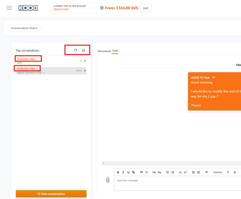 If you need help modifying a trip draft, KOOB makes it easy to communicate clearly with your DMC.