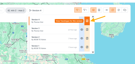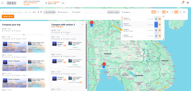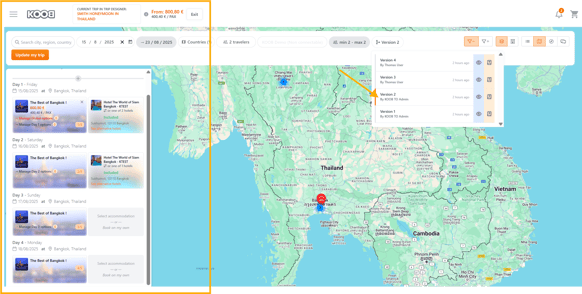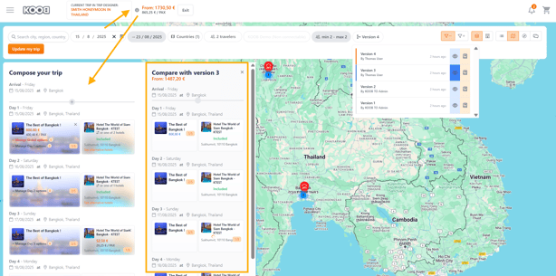📝 Yes! All versions are saved and accessible via the "Version" button in the Trip Designer.