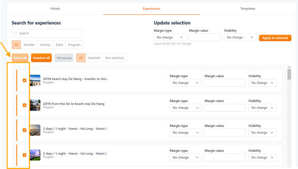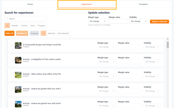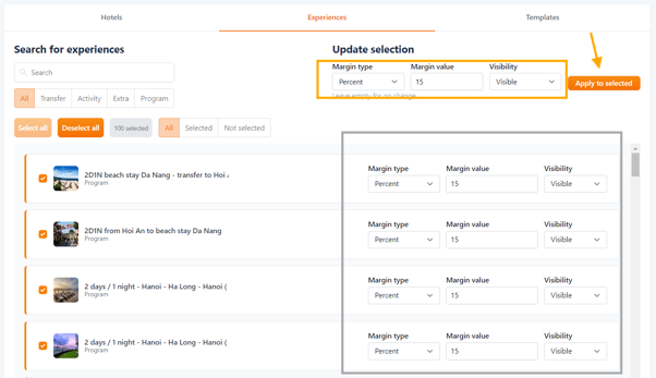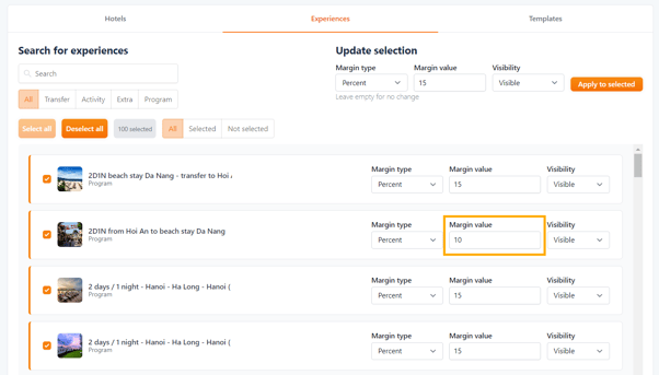 • Here for example, I'm going to allocate a 15% margin to these selected Experiences.