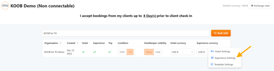 Manage Visibility (Enable or Disable Experiences for TOs).