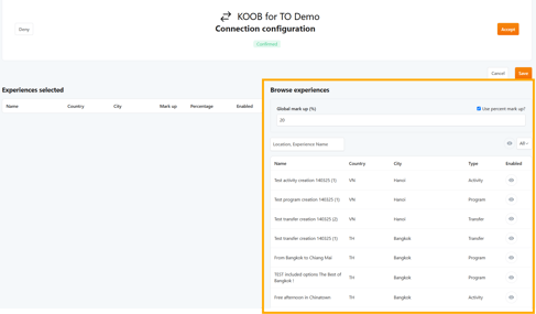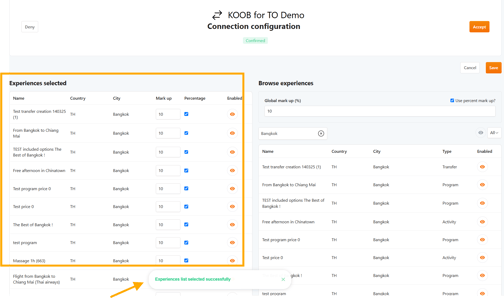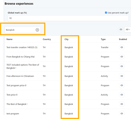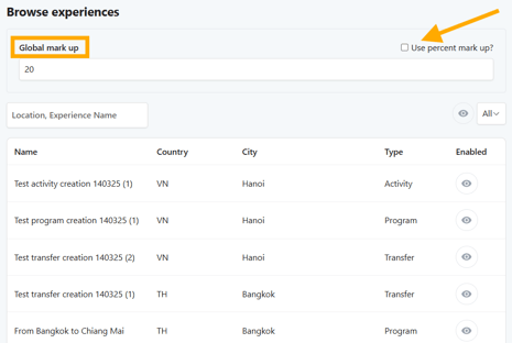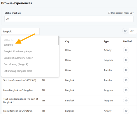 📌 Example: You set a 10% margin across all Experiences in Bangkok for a European TO, ensuring pricing competitiveness while maintaining a profit margin.