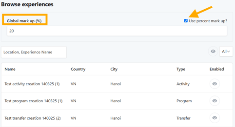 • Apply a global margin across all Experiences OR set margins per location (region/city).