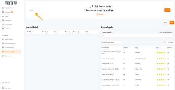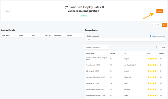 βœ” Accept β†’ Grants the TO access to your hotels.