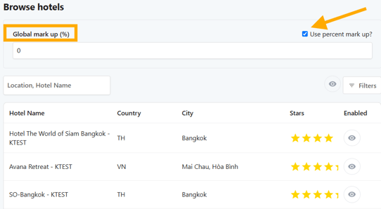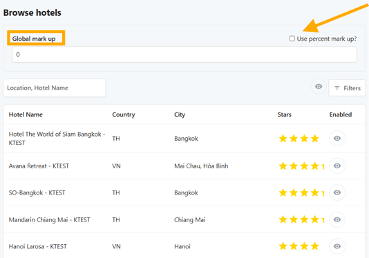 • Click on the Eye Icon πŸ‘ to apply the selected margin to all hotels in the list.