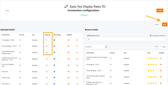 πŸ“Œ Example: You set a 10% margin across all hotels in Bangkok for a European TO, ensuring pricing competitiveness while maintaining a profit margin.