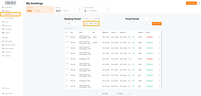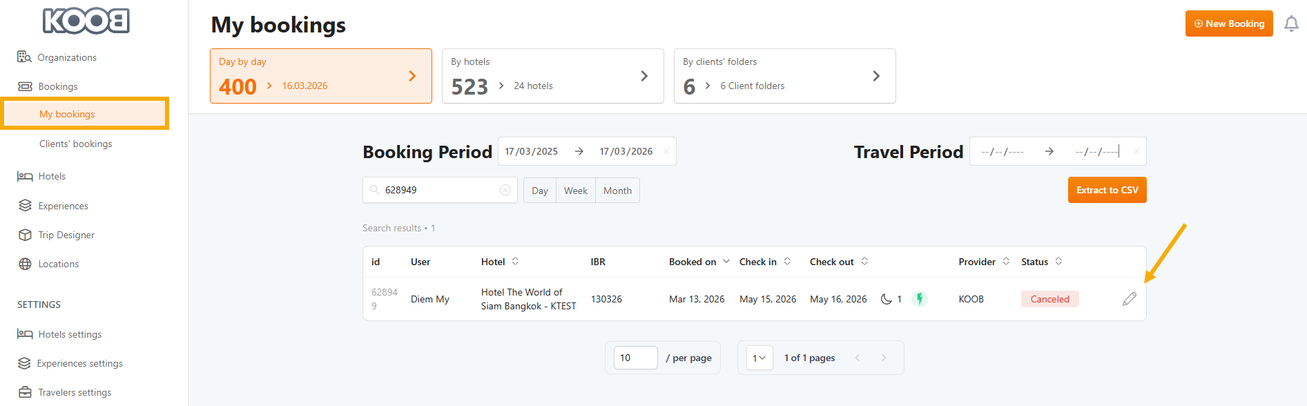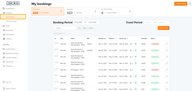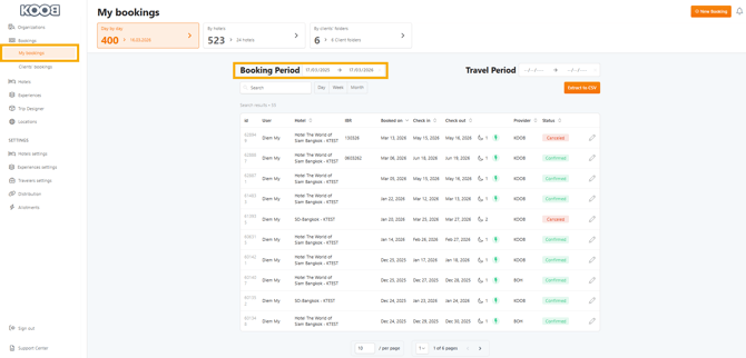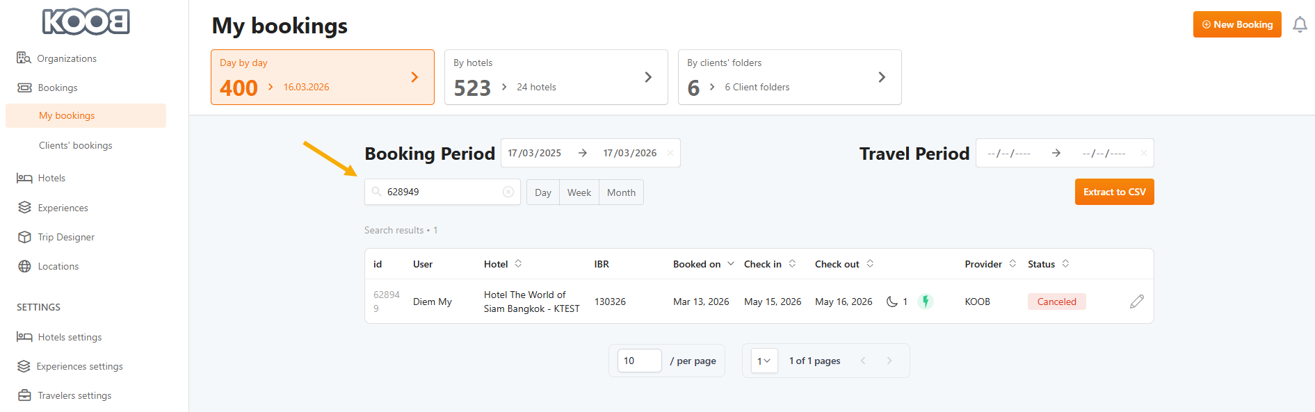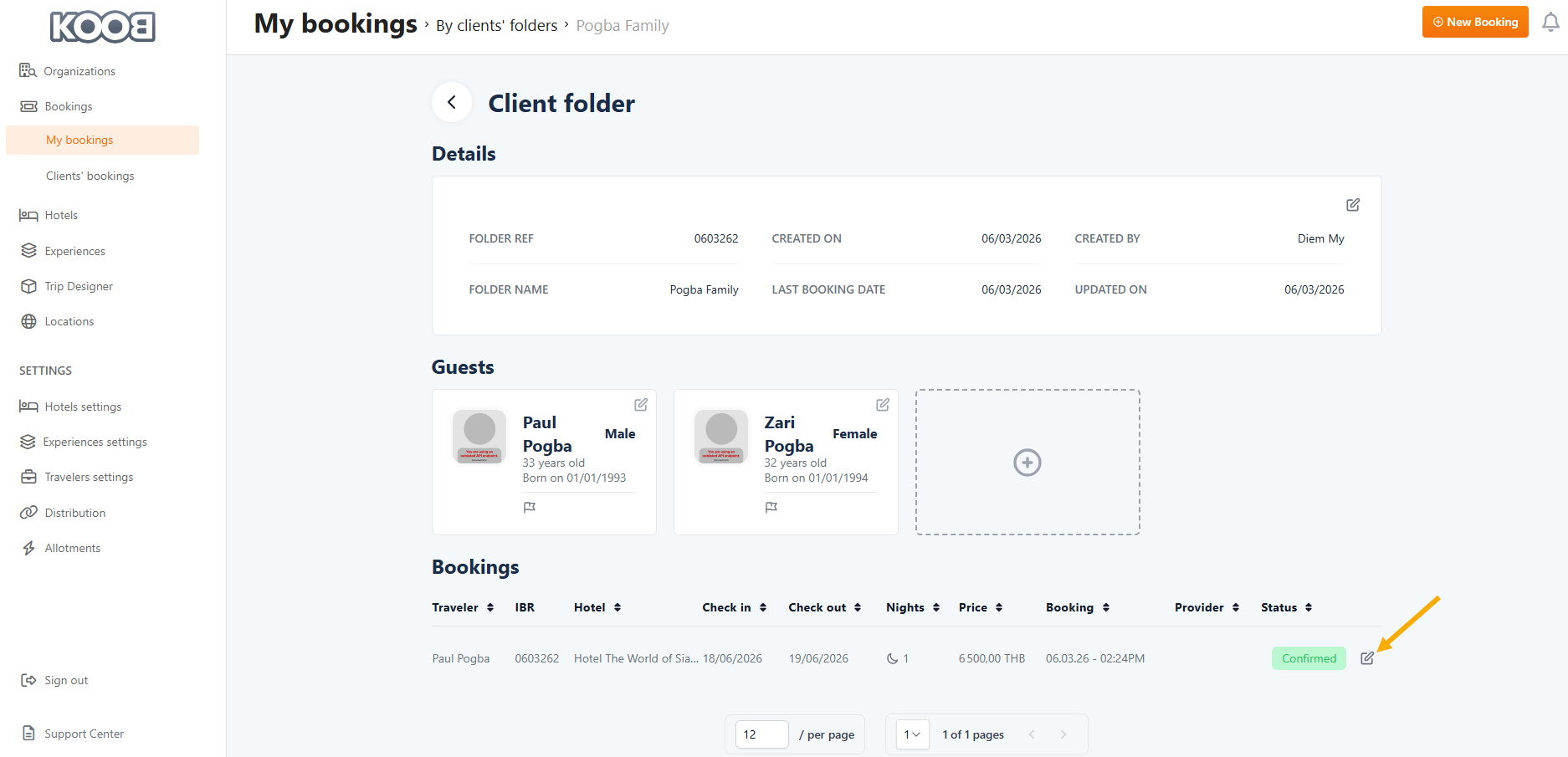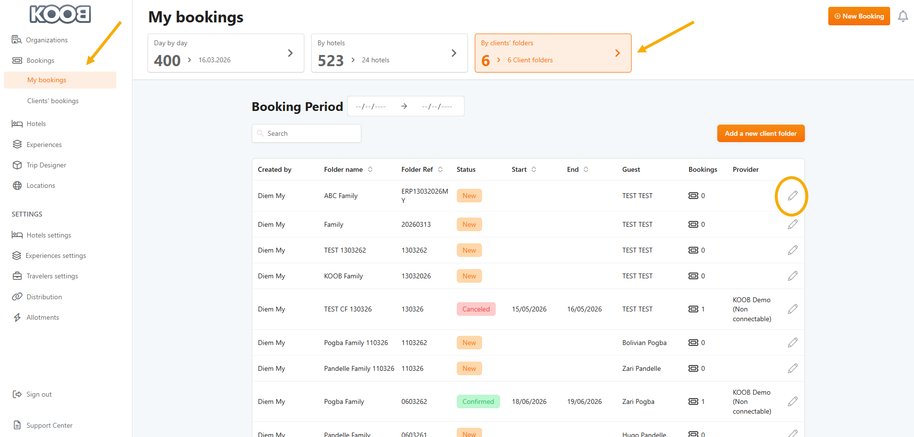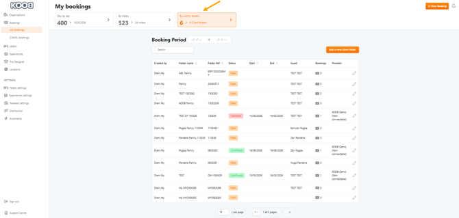 📌 Tip: The By Client Folder tab groups multiple bookings under the same internal reference, making it easier to track multi-hotel reservations for a single client folder.