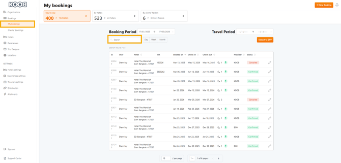 KOOB provides a structured tracking system for hotel and experience bookings, ensuring DMCs can monitor all reservations, status updates, and booking history in real time.