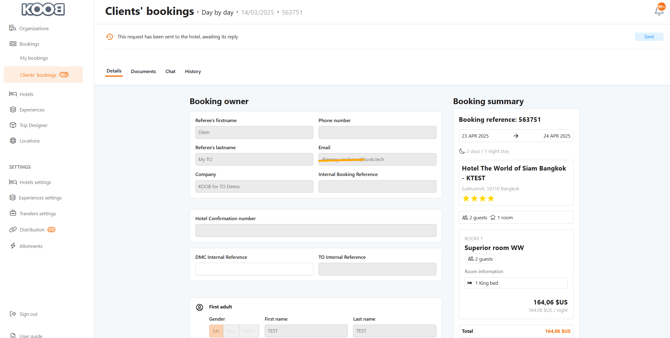 💡 Tip: If a hotel does not respond to an On Request booking, follow up via Chat in the booking details to request an update.