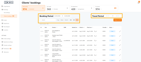 Monitoring total bookings and revenue is key for DMCs to evaluate business performance, measure the success of distribution strategies, and identify their most profitable Tour Operators (TOs). KOOB provides structured data exports and dashboards that help you track confirmed bookings, net and gross revenue, and profit margins with clarity.