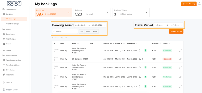💡 Tip: Use the Clients’ Bookings extract for margin analysis and TO invoicing, as it includes net cost, selling price, and applied margin.