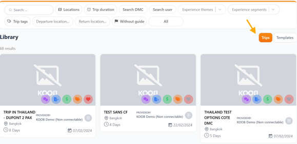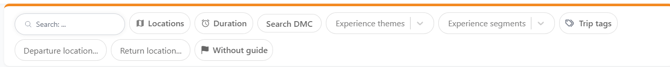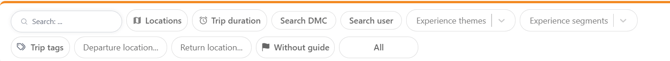 π Search | Use the free text bar to type a trip or template name, city, keyword, or even DMC name. Ideal for quick access when you know what you're looking for. |