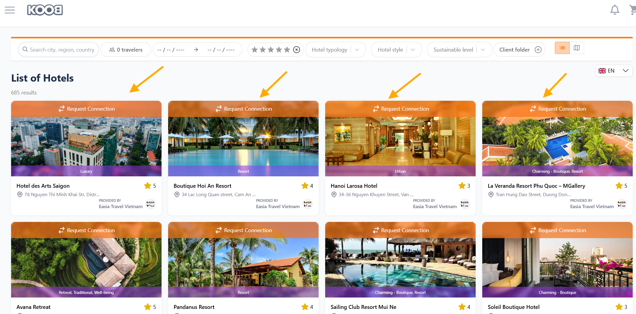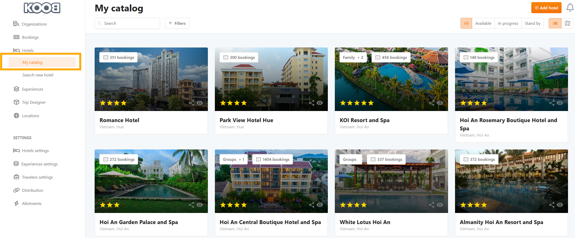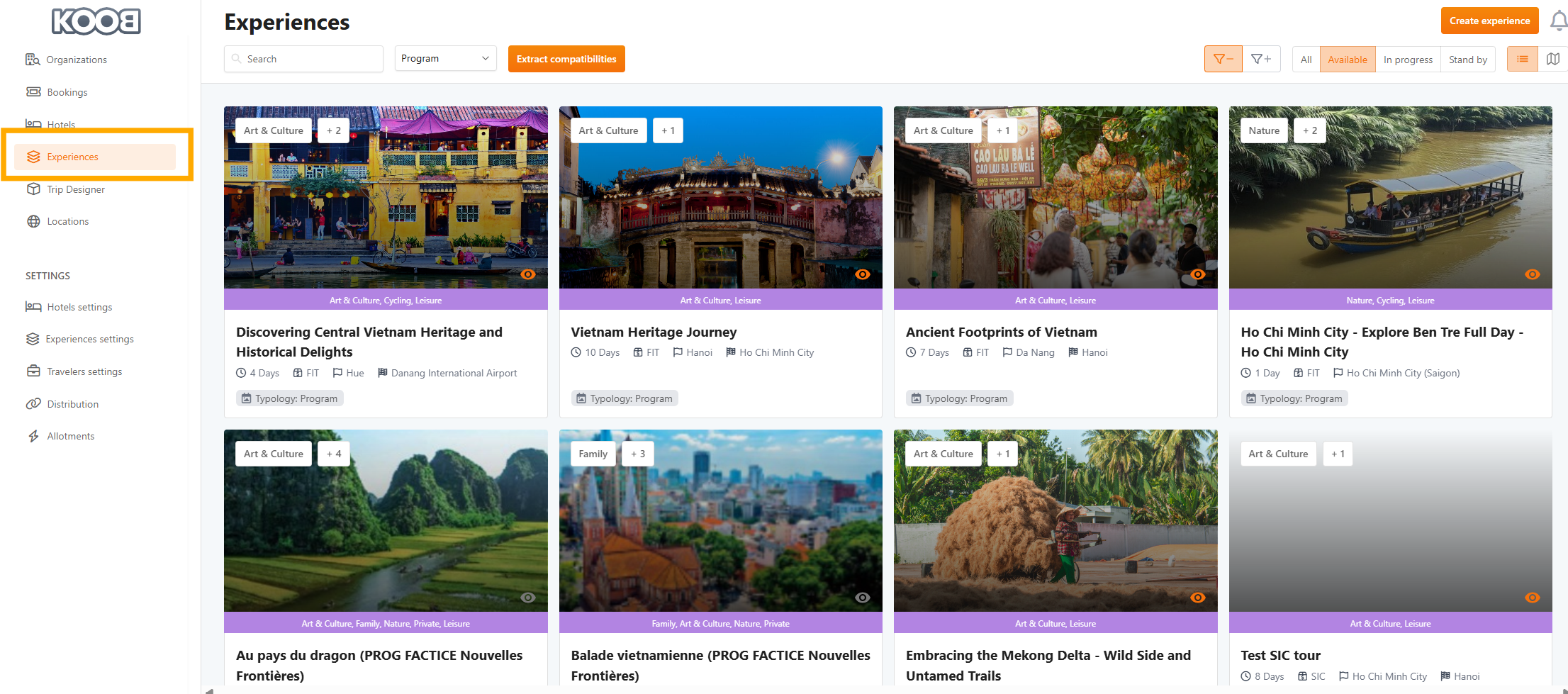 KOOB allows DMCs to display their hotels and experiences in two ways:
