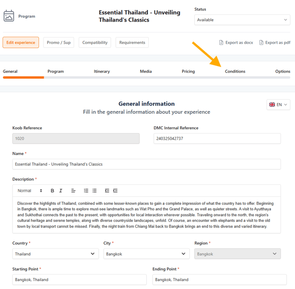 📌 Tip: You can choose whether TOs see the hotel's contract conditions or your customized DMC-TO conditions under the “Distribution Parameters” settings.
