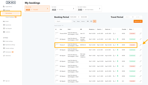 📌 Tip: If a TO cancels a booking, KOOB automatically calculates the fee based on the cancellation policy.