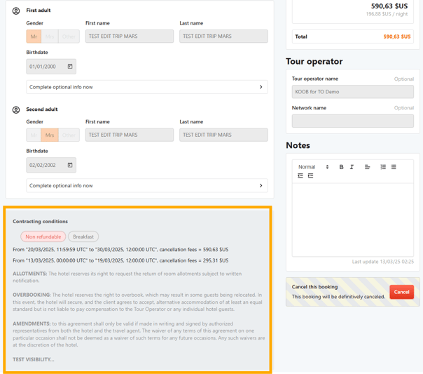 • Ensures TOs have clear cancellation rules before confirming a booking.