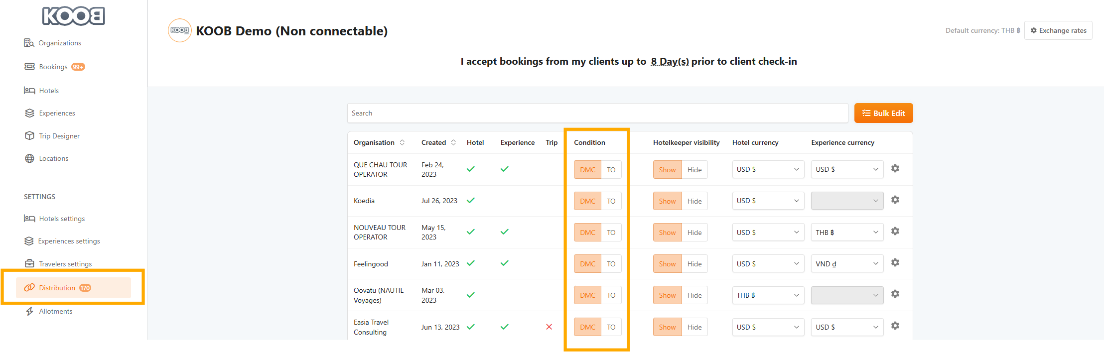 ✅Hotel contracting conditions can be customized per TO via Distribution Settings.